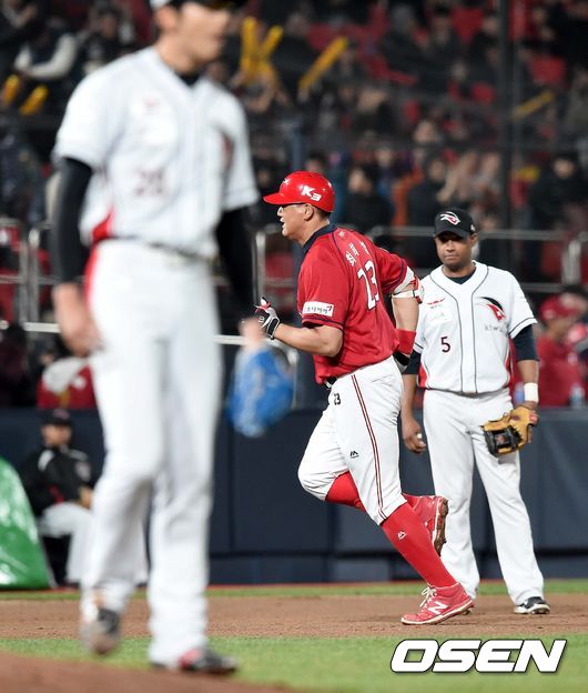 8회초 KIA 공격 1사 1루 상황 최희섭이 kt 투수 이준형을 상대로 우중간 투런포를 날리고 그라운드를 돌고 있다.