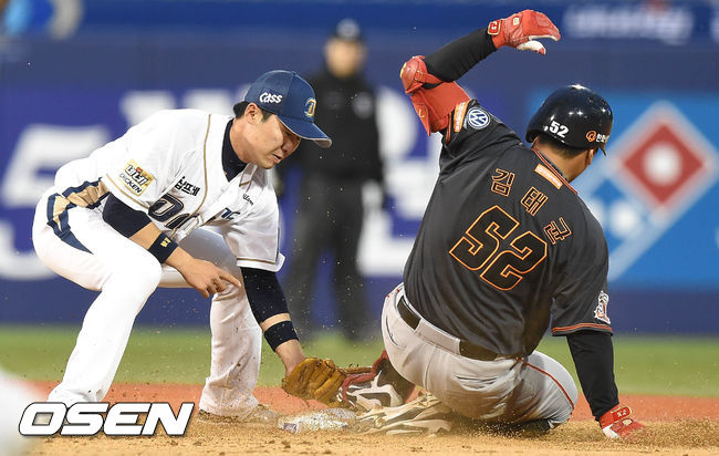 NC가 1회말 시작부터 한화 선발 송은범에게 선취점을 냈다. 1번 김종호가 한화 2루수 강경학의 포구 실책으로 출루한 뒤 2루 베이스를 훔치며 만든 1사 2루 기회에서 나성범의 중전 적시타로 기선 제압했다.