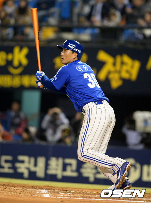 3일 오후 서울 잠실야구장에서 열린 '2015 타이어뱅크 KBO 리그' LG 트윈스와 삼성 라이온즈의 경기, 7회초 삼성 이승엽이 좌전안타를 날리며 KBO리그 통산 두 번째 3,300루타를 달성했다.