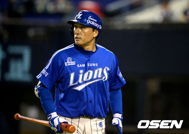 3일 오후 서울 잠실야구장에서 열린 '2015 타이어뱅크 KBO 리그' LG 트윈스와 삼성 라이온즈의 경기, 7회초 삼성 이승엽이 좌전안타를 날리며 KBO리그 통산 두 번째 3,300루타를 달성했다. 안타후 교체되는 이승엽.