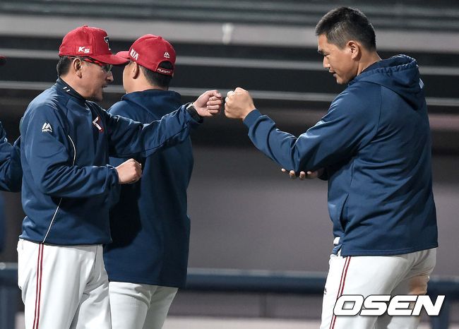 KIA 김기태 감독을 비롯한 코칭스태프와 최희섭을 비롯한 선수들이 하이파이브를 나누고 있다./dreamer@osen.co.kr