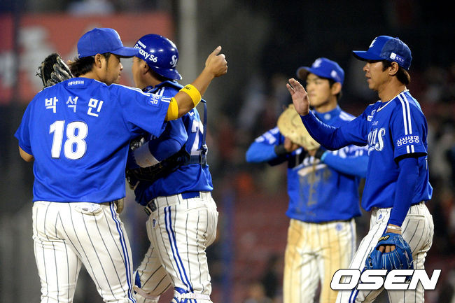 경기후 삼성 선수들이 승리를 기뻐하고 있다. /jpnews@osen.co.kr