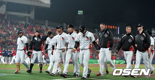 kt 선수들이 팬들에게 인사한 뒤 그라운드를 나서고 있다./dreamer@osen.co.kr