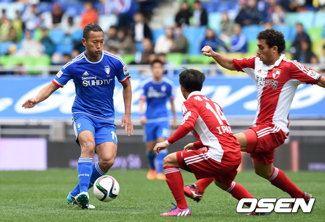 4일 오후 경기 수원 월드컵경기장에서 '2015 K리그 클래식' 수원 삼성 블루윙즈와 부산 아이파크의 경기가 열렸다.