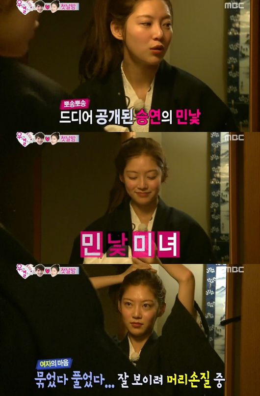 이날 방송에서 승연은 종현과 함께 일본 여행을 즐겼고 숙소에서 자기 전, 민낯을 공개해 시선을 모았다.