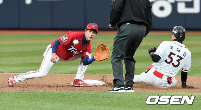 1회말 무사 1루에서 kt 1루주자 이대형이 도루에 성공하고 있다.