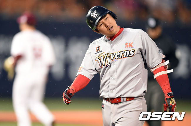 4일 오후 서울 목동구장에서 열린 '2015 타이어뱅크 KBO리그' 넥센 히어로즈와 SK 와이번스의 경기, 5회초 2사 1,2루 SK 최정이 자신의 타구가 팬스 앞에서 잡히자 아쉬워하고 있다.
