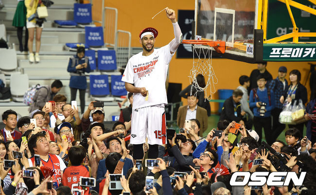 모비스 문태영이 림 그물을 자르고 세리머니를 하며 팬들과 우승을 기뻐하고 있다./jpnews@osen.co.kr