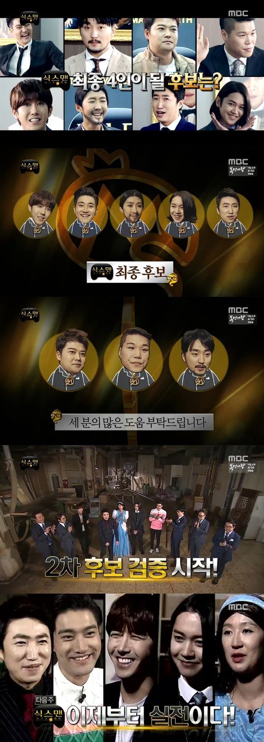 4일 방송된 MBC 예능프로그램 ‘무한도전’은 제 6의 멤버를 영입하는 식스맨 특집 4탄이 담겼다. 서장훈, 제국의 아이들 광희, 강균성, 유병재, 전현무, 장동민, 홍진경, 슈퍼주니어 최시원 등이 식스맨 후보다.