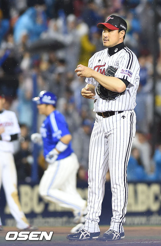 9회초 1사 1루때 삼성 최형우에게 투런포를 허용한 LG 봉중근이 허탈한 표정을 짓고 있다. /ouxou@osen.co.kr
