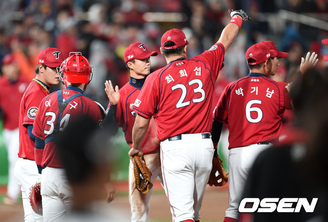 경기 종료 후 KIA 선수들이 승리의 기쁨을 나누고 있다./sunday@osen.co.kr