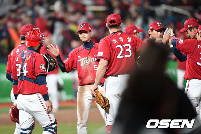 경기 종료 후 KIA 선수들이 승리의 기쁨을 나누고 있다./sunday@osen.co.kr