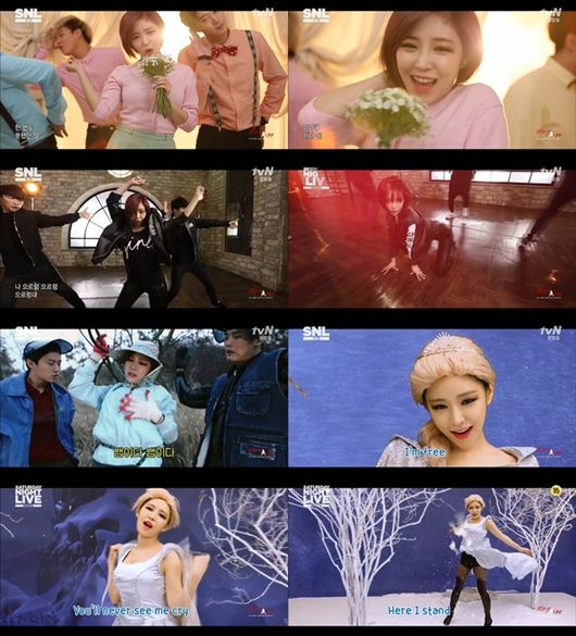 가인은 4일 오후 방송된 케이블채널 tVN 예능프로그램 'SNL코리아'에 출연했다.