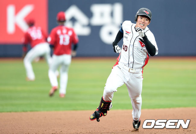 1회말 2사에서 kt 김태훈이 우전 안타를 치고 KIA 이종환의 실책을 틈타 3루까지 달리고 있다.