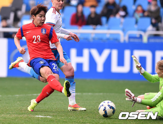 문제는 공격진이었다. 박은선과 지소연이 나서지 않았지만 한국은 중원에서 풀어가는 경기력이 나쁘지 않았다. 물론 러시아도 완벽한 전력은 아니었지만 한국은 러시아에 앞선 경기력을 선보였다.