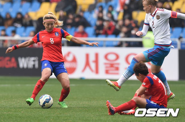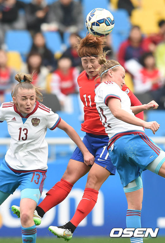 박은선, 지소연 등 주전들이 대거 빠진 대표팀은 러시아를 상대로 전반 초반 유리한 경기를 펼쳤다. 빠른 스피드를 바탕으로 안정적인 경기를 이끈 한국은 수 차례 기회를 만들기 위해 노력했다.
