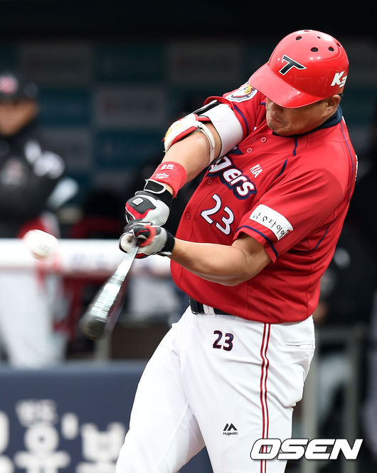 7회초 1사 1,3루에서 KIA 최희섭이 중전 적시타를 치고 있다.