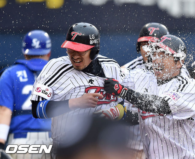 LG는 5일 잠실구장에서 열린 ‘2015 타이어뱅크 KBO리그’ 삼성과 시즌 3차전에서 6-5로 끝내기 승리를 거뒀다. LG는 9회말 정성훈이 임창용을 상대로 경기에 마침표를 찍는 안타를 날렸다.