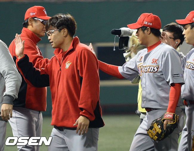 경기 종료,승리한 SK 김용희 감독과 최정이 하이파이브를 하고 있다. /ouxou@osen.co.kr