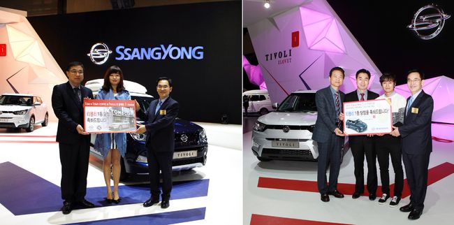 -쌍용차 전시관에서 1등 당첨자 2명에게 티볼리 차량 전달