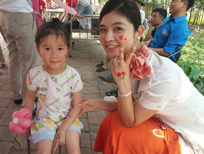제주항공과 (사)열린의사회가 베트남 하노이 인근 박장성에서 4월 5일(현지시간) 치과 진료를 진행하고 있다. 아래는 제주항공 승무원이 어린이의 얼굴에 그림을 그려주고 있다. / 제주항공 제공