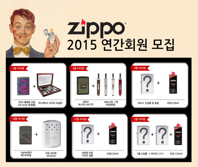 지포는 지포를 사랑하는 국내 팬들과 수집가들이 유니크한 지포 제품들을 더욱 빠르고 쉽게 경험할 수 있는 기회를 제공하기 위해 '2015 지포 연회원'을 모집한다고 밝혔다.
