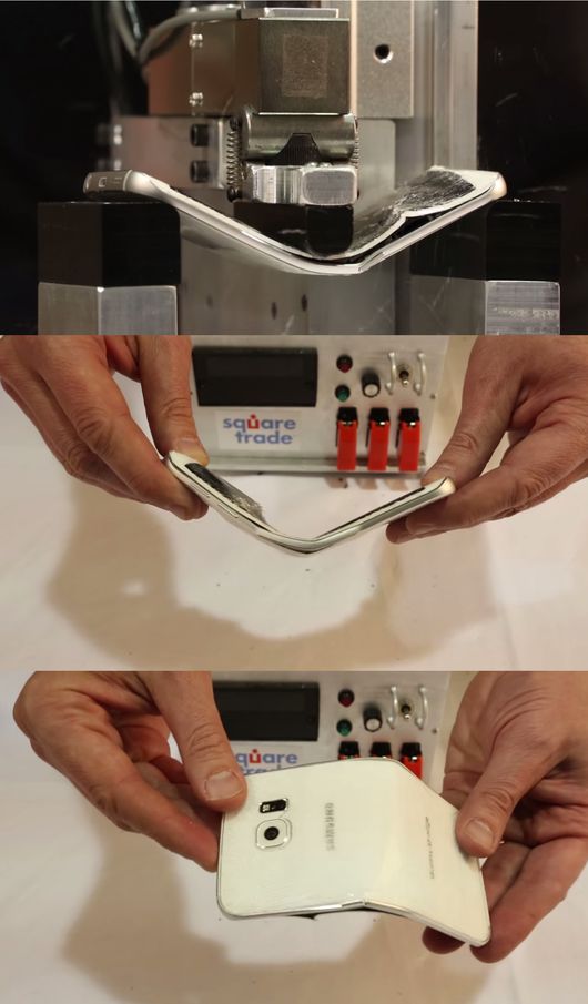 비슷한 비교 시험은 스마트폰 보증 수리 전문업체 '스퀘어 트레이드'에서도 있었다. '스퀘어 트레이드'는 아이폰 6 출시 시점에 크게 논란이 됐던 '벤드게이트(Bendgate)'를 실험실에서 재연했다. 즉 압력 측정기 아래에 최신 스마트폰을 갖다 놓고 얼마나 높은 압력까지 견디는 지를 실험했다.