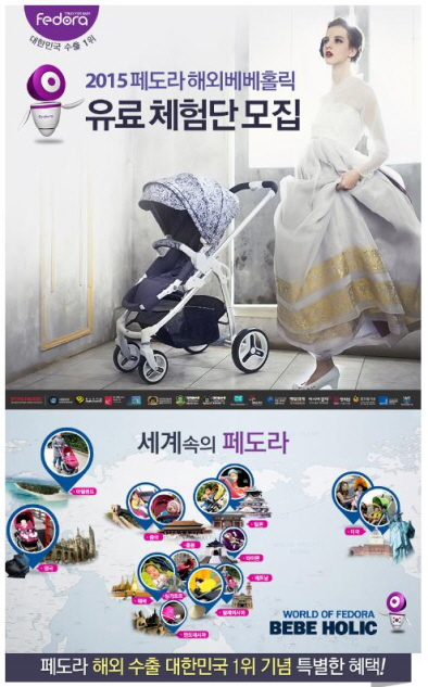 또한 페도라는 잇따른 수출 계약 체결을 기념해 '해외 베베홀릭 유료 체험단'을 모집한다. 국산브랜드 페도라를 해외에서 알리기 위해 모집대상은 지난 1일부터 30일까지 해외로 출국하는 소비자이며, 참여 방법은 쁘레베베샵(http://www.prebebeshop.co.kr)에서 체험단 참여 신청을 하면 된다. 체험단으로 선정되면 2015년 페도라 신제품을 50% 할인된 금액에 구매할 수 있으며 주어진 체험 미션을 성실히 수행할 경우 구매 금액을 전액 환급 받을 수 있다.