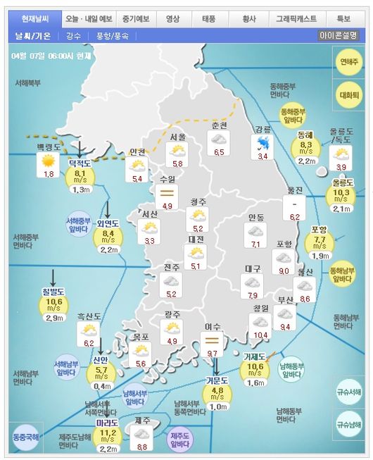 [OSEN=이슈팀] 봄은 왔으되 봄 같지 않은 날씨가 계속 되고 있다. 7일 날씨는 전국이 구름많은 가운데, 동해안은 흐리고 비가 내리고 있다. 또한 강원산간에는 비 또는 눈이 내리고 있으며, 일부 내륙에는 박무가 낀 곳이 있겠다. 미세먼지는 전국이 '보통'이거나 '좋음' 수준을 보여 야외 활동에는 지장이 없겠다.