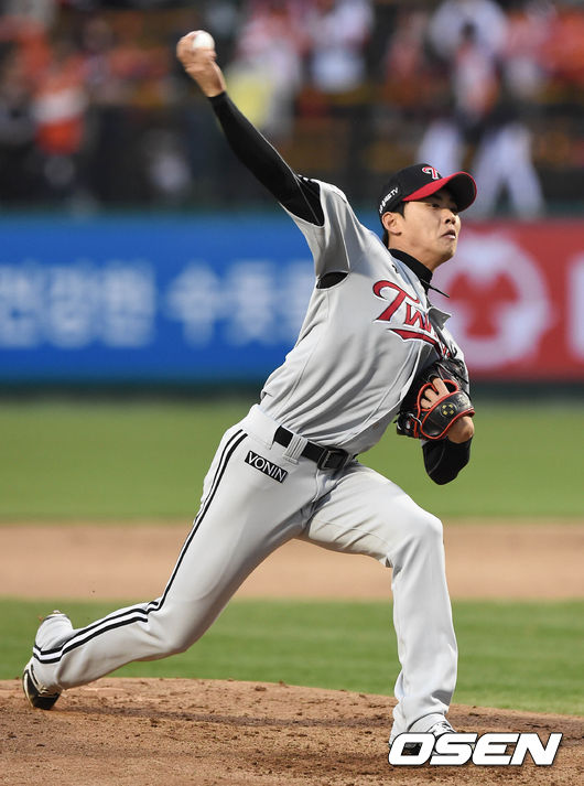 임정우는 7일 대전 한화생명이글스파크에서 벌어진 2015 타이어뱅크 KBO리그 한화와 원정경기에 선발등판, 5⅓이닝 8피안타 2볼넷 1사구 3탈삼진 2실점으로 막았다. LG가 3-2로 리드한 상황에서 마운드를 내려와 시즌 첫 승 요건을 채웠다.
