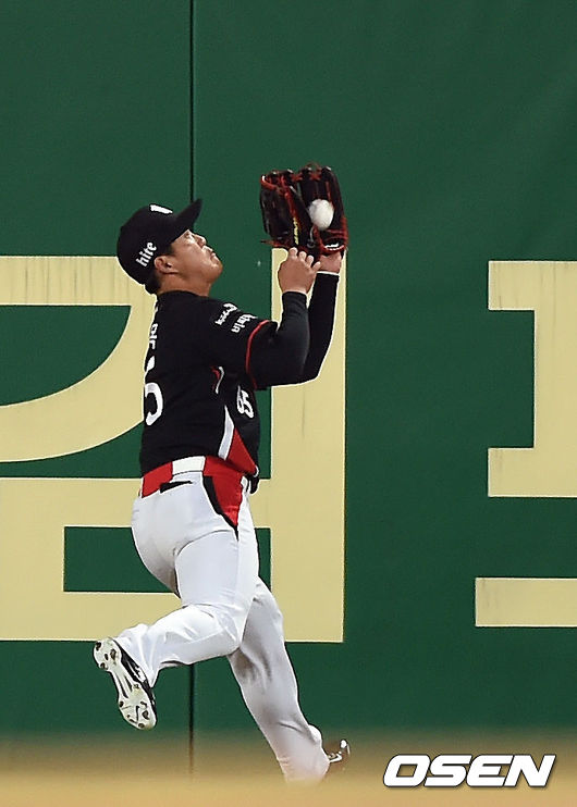 2회말 1사 kt 배병옥이 SK 이재원의 타구를 잡아내고 있다.