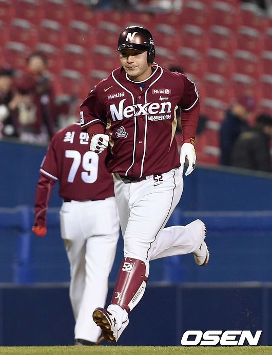 3회초 넥센 공격 1사 주자없는 상황 박병호가 좌월 솔로포를 날리고 그라운드를 돌고 있다.