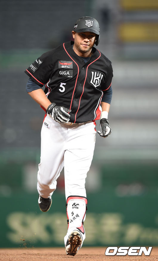 6회초 kt 마르테가 솔로 홈런을 때린 뒤 베이스를 돌고 있다.