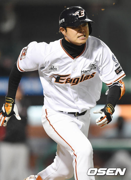 7일 오후 대전시 한화생명 이글스 파크에서 열린 '2015 타이어뱅크 KBO 리그' 한화 이글스와 LG 트윈스의 경기 7회말 1사 1,2루 이시찬이 1타점 적시타를 치고 달리고 있다.