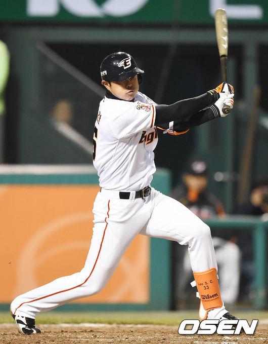 7일 오후 대전시 한화생명 이글스 파크에서 열린 '2015 타이어뱅크 KBO 리그' 한화 이글스와 LG 트윈스의 경기 7회말 1사 1,2루 이시찬이 1타점 적시타를 치고 있다.