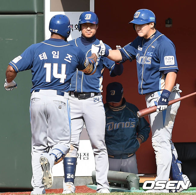 또 하나의 요소는 중심타선의 화력이었다. NC는 나성범을 비롯해 테임즈 이호준이 6안타와 4타점을 뽑아내며 승리를 이끌었다. 1-1로 팽팽하던 4회초 NC는 에릭 테임즈의 우월솔로홈런으로 앞서갔다. KIA는 나지완이 4회말 곧바로 똑같은 코스로 홈런을 날려보내 맞불을 놓았다.