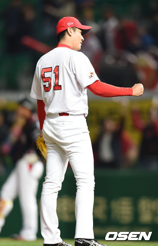 SK 윤길현이 9회초 2사 만루 kt 조중근을 상대로 경기를 마무리 짓고 기뻐하고 있다./ youngrae@osen.co.kr