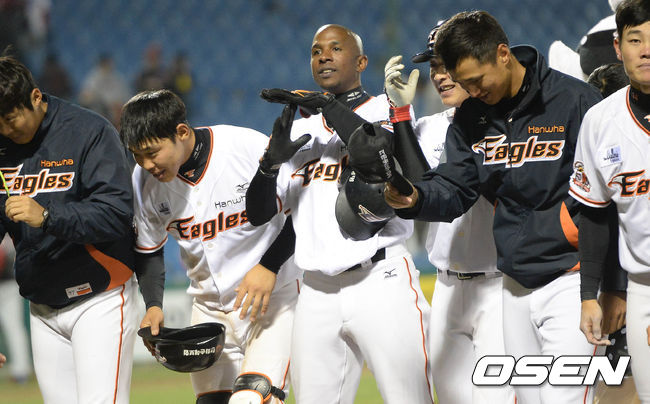 한화는 7일 대전 한화생명이글스파크에서 열린 2015 타이어뱅크 KBO리그 LG와 홈경기에서 연장 11회말 나이저 모건의 끝내기로 4-3 역전승을 거뒀다. 최근 2연패에서 벗어난 한화는 3승4패로 5할 승률에 근접했다. LG는 최근 2연승을 마감하며 3승5패가 됐다. / baik@osen.co.kr