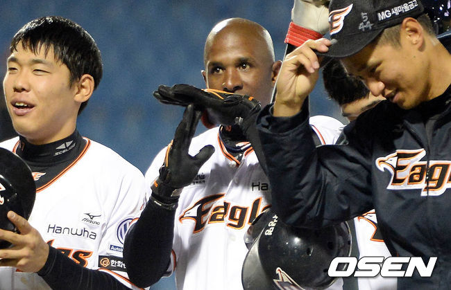 한화는 7일 대전 한화생명이글스파크에서 열린 2015 타이어뱅크 KBO리그 LG와 홈경기에서 연장 11회말 나이저 모건의 끝내기로 4-3 역전승을 거뒀다. 최근 2연패에서 벗어난 한화는 3승4패로 5할 승률에 근접했다. LG는 최근 2연승을 마감하며 3승5패가 됐다. / baik@osen.co.kr