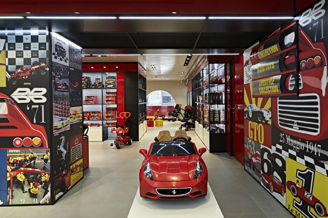 750평방미터 규모로 꾸며진 페라리 밀라노 스토어는 방문객들이 페라리의 세계에 완전히 몰입할 수 있도록 꾸며진 것이 특징이다. 4대의 F1 시뮬레이터와 인터액티브 비디오 월, 다중감각공간을 갖춘 이곳은 쇼핑 명소에 그치지 않고 엔터테인먼트 공간 구실도 한다.