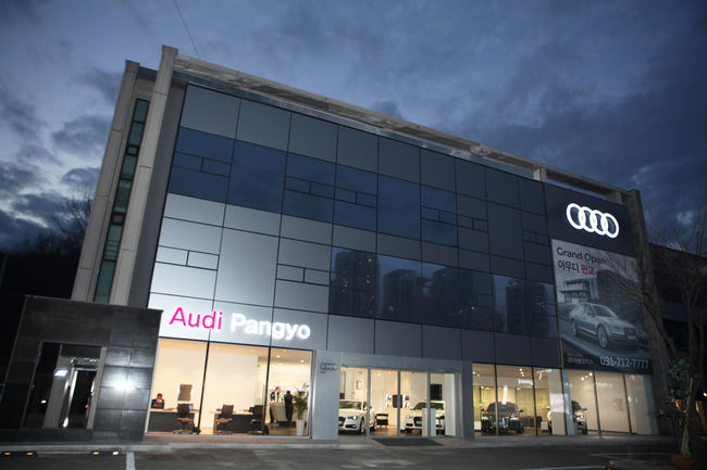 기존 분당구 수내동에 위치했던 아우디 분당 전시장에서 판교 IT 밸리 부근 분당구 대왕판교로에 새롭게 확장 이전한 아우디 판교 전시장은 연면적 835제곱미터에 지상 3층 규모로 총 6대의 차량을 전시할 수 있는 전시공간과 컨설팅 라운지를 갖췄다. 이에 더불어 방문자 편의를 위해 넓은 주차공간과 발렛 서비스도 제공한다.
