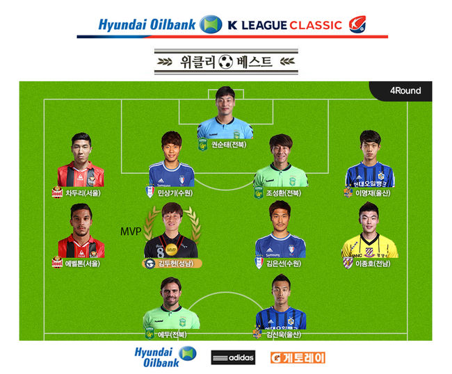 '까치 두목' 김두현(성남) 현대오일뱅크 K리그 클래식 2015 4라운드 라운드 베스트에 선정됐다.
