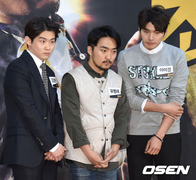 김창환, 유병재, 이이경이 포토타임을 갖고 있다.