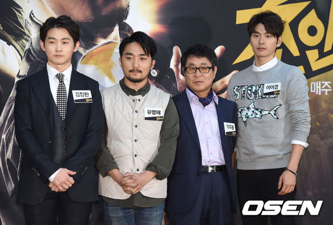 김창환, 유병재, 기주봉, 이이경이 포토타임을 갖고 있다.