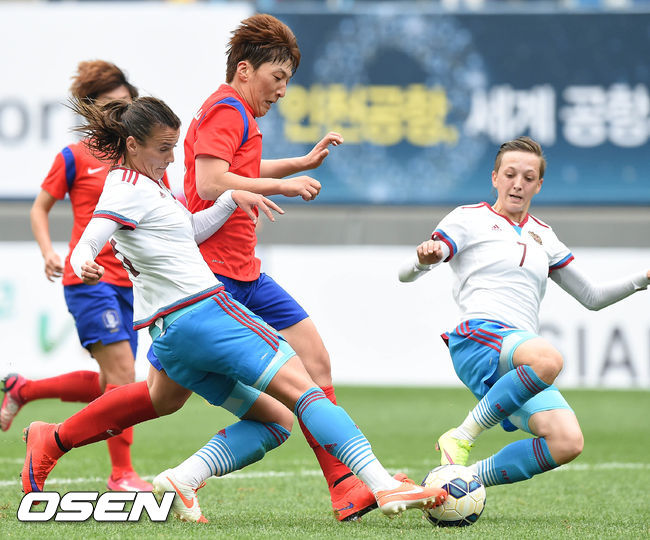 1차전에서 한국은 경기 막판 터진 지소연(첼시 레이디스)의 결승골에 힘입어 승리했다. 경기 내내 러시아를 몰아쳤지만 골은 터지지 않았고 힘겨운 싸움을 벌일 수밖에 없었다.
