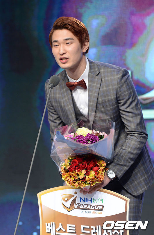 베스트드레서상을 수상한 한국전력 최석기가 수상소감을 말하고 있다.