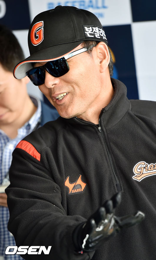 8일 오후 대구시민운동장 야구장에서 '2015 타이어뱅크 KBO 리그' 삼성 라이온즈와 롯데 자이언츠의 경기가 열릴 예정인 가운데, 롯데 이종운 감독이 덕아웃에서 환하게 미소짓고 있다.