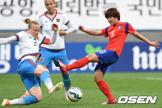 1차전에서 한국은 경기 막판 터진 지소연(첼시 레이디스)의 결승골에 힘입어 승리했다. 경기 내내 러시아를 몰아쳤지만 골은 터지지 않았고 힘겨운 싸움을 벌일 수밖에 없었다.
