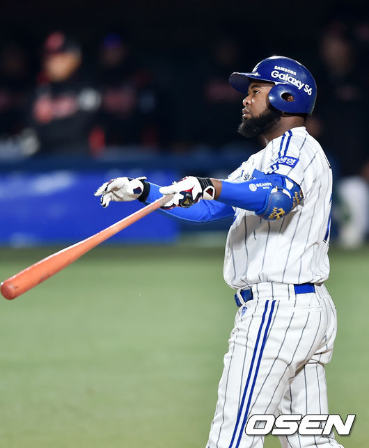 8일 오후 대구시민운동장 야구장에서 열린 '2015 타이어뱅크 KBO 리그' 삼성 라이온즈와 롯데 자이언츠의 경기, 3회말 무사 주자 1,3루 삼성 나바로가 선제 스리런 홈런을 날리고 있다.