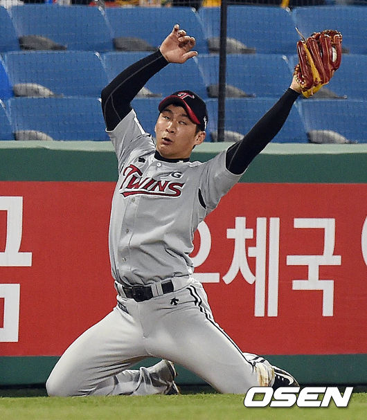 8일 오후 대전시 한화생명 이글스 파크에서 열린 '2015 타이어뱅크 KBO 리그' 한화 이글스와 LG 트윈스의 경기 4회말 1사 1,2루 모건의 뜬공을 오지환이 잡고 있다.